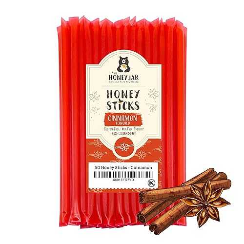 The Honey Jar Cinnamon Flavored Honey Sticks - Pure Honey Straws For Tea, Coffee, or a Healthy Treat - One Teaspoon of Flavored Honey Per Stick - Made In The USA with Real Honey - (50 Count)