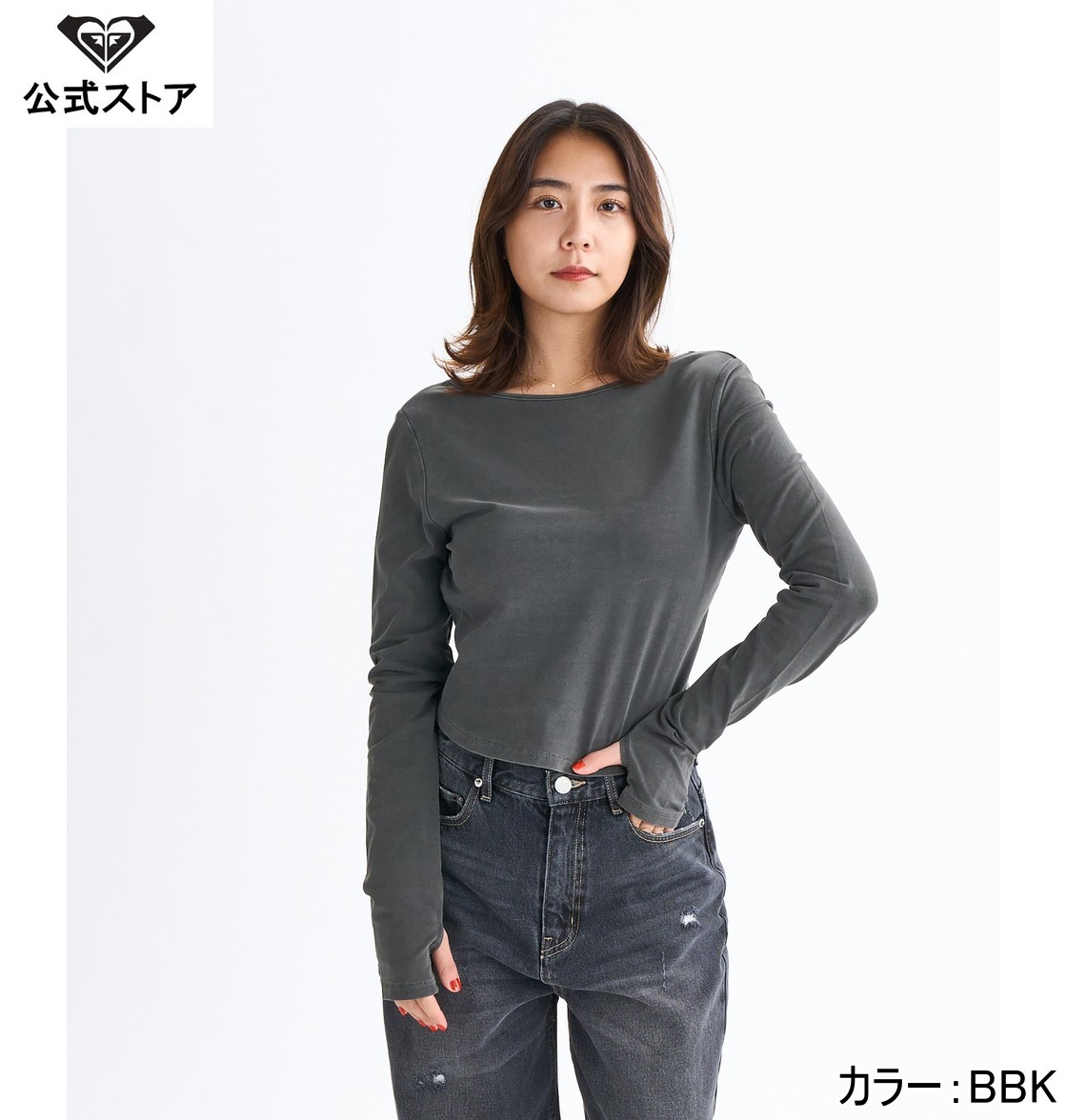 #WIYH キャンペーン対象商品です。 バックを大きく開けたデザインが個性的な、タイトシルエットのロングスリーブトップス。フロントはボートネックのデザインに仕上げました。カップ付きなので、1枚で着用できるのもポイント。ハイウエストのボトムに裾をインしてコーディネートするのがおすすめです。BBKとBRNは製品染め、NATは洗い加工をかけた生地を使用しています。バックにROXYハート、袖口にはサムホール付き。採寸サイズ 身丈 着丈 身幅 肩幅 袖丈S43後ろ身丈21373567M46後ろ身丈24403668L50後ろ身丈27453770 ※単位は(cm)。 素材:綿95% ポリウレタン5%