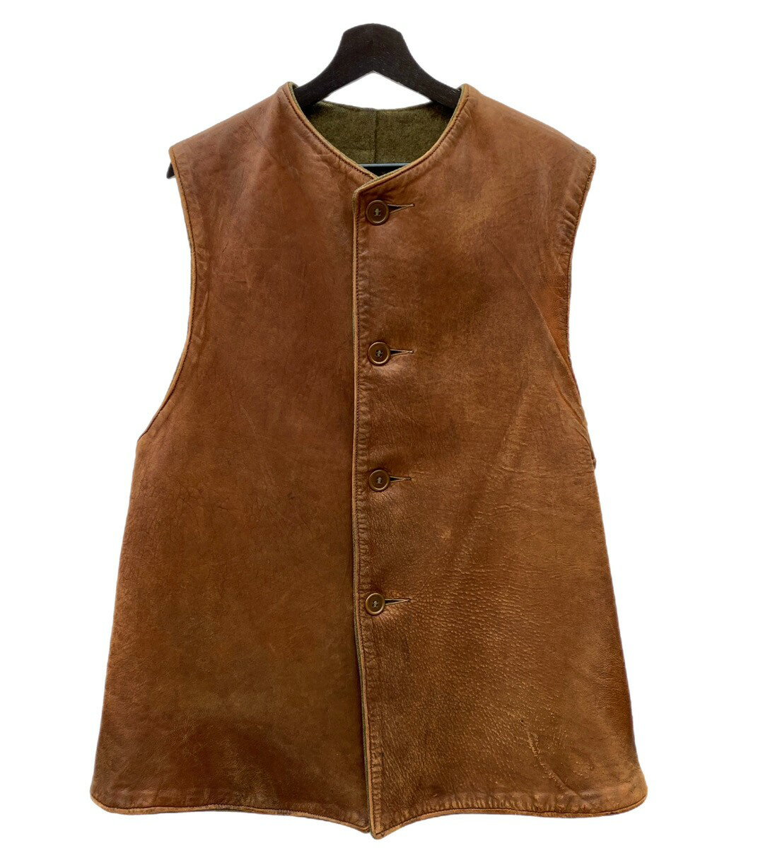 【中古】ベルギーアーミー Belgian army 40S ETS MARCEL CAUVIN Leather Jerkin レザー ジャーキン ベスト 1949年製 メンズ 表記無