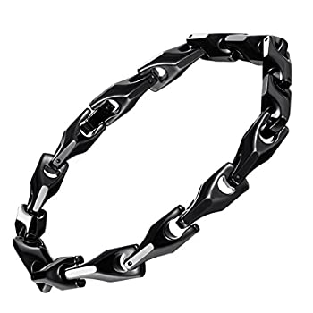 【中古】【輸入品・未使用】Urban Jewellery Men's Titanium Magnetic Link Bangle Bracelet with Carbon Fibre 22cm (Black)