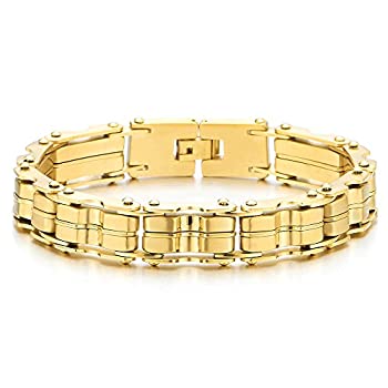 【中古】【輸入品・未使用】Heavy-duty Gold Colour Stainless Steel Men's Bike Chain Bracelet Jewellery for Man Bold and Chunky