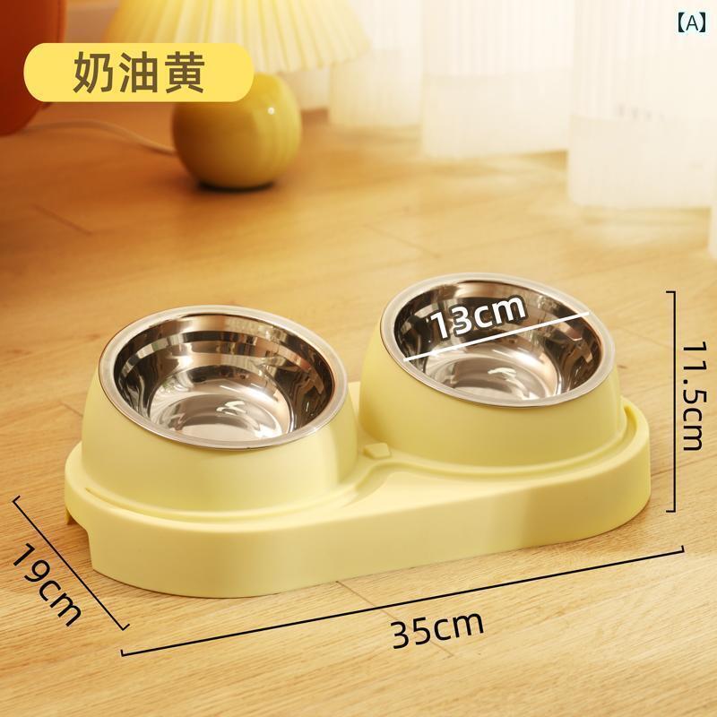 ペット用 ボウル 食器 猫用 ボウル 犬用 ドッグフード ダブル ステンレス ウォーター 斜め 口 転倒 防止 ライス フード ペット 用品