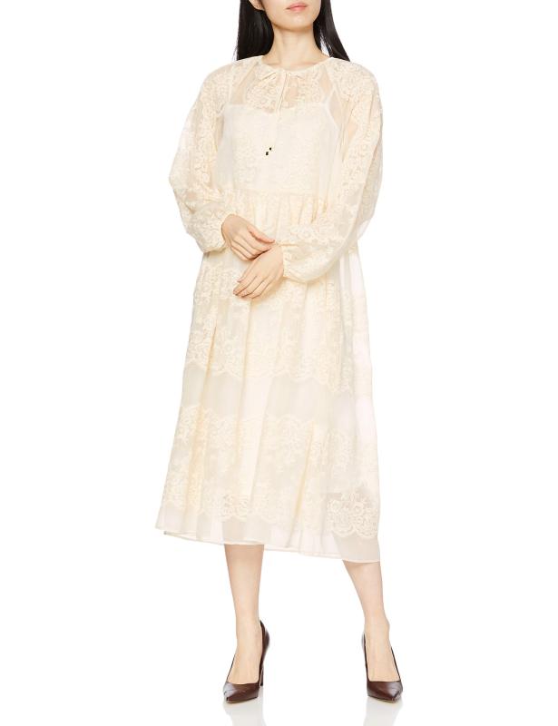 [グレースコンチネンタル] 2021SS 0121131196 フラワー刺繍ギャザーワンピース レディース