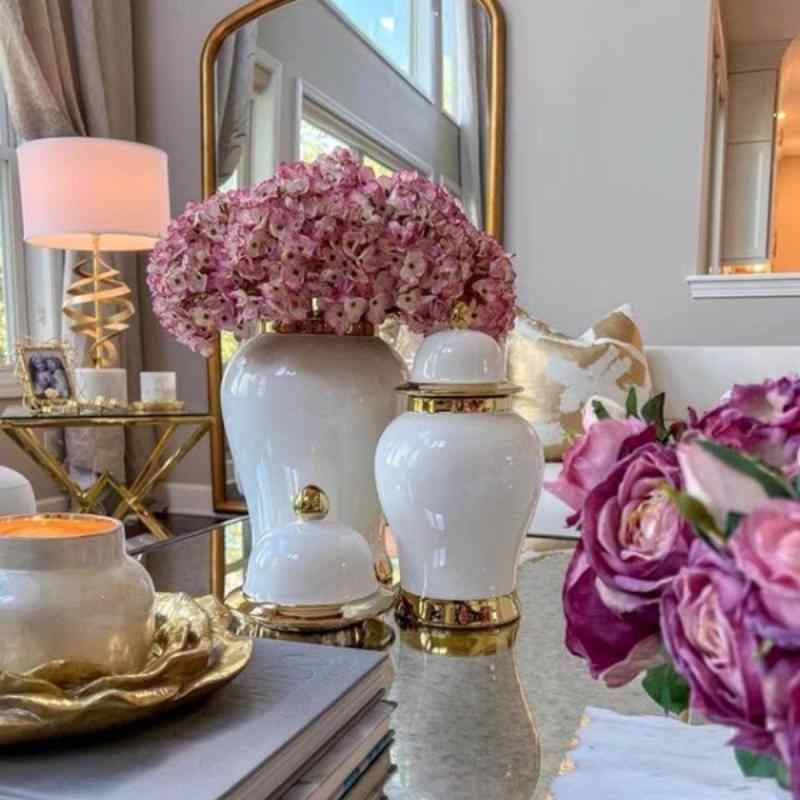 花瓶 陶器 ヨーロピアン 高級感 金縁 テレビ台 玄関 置物 オブジェ