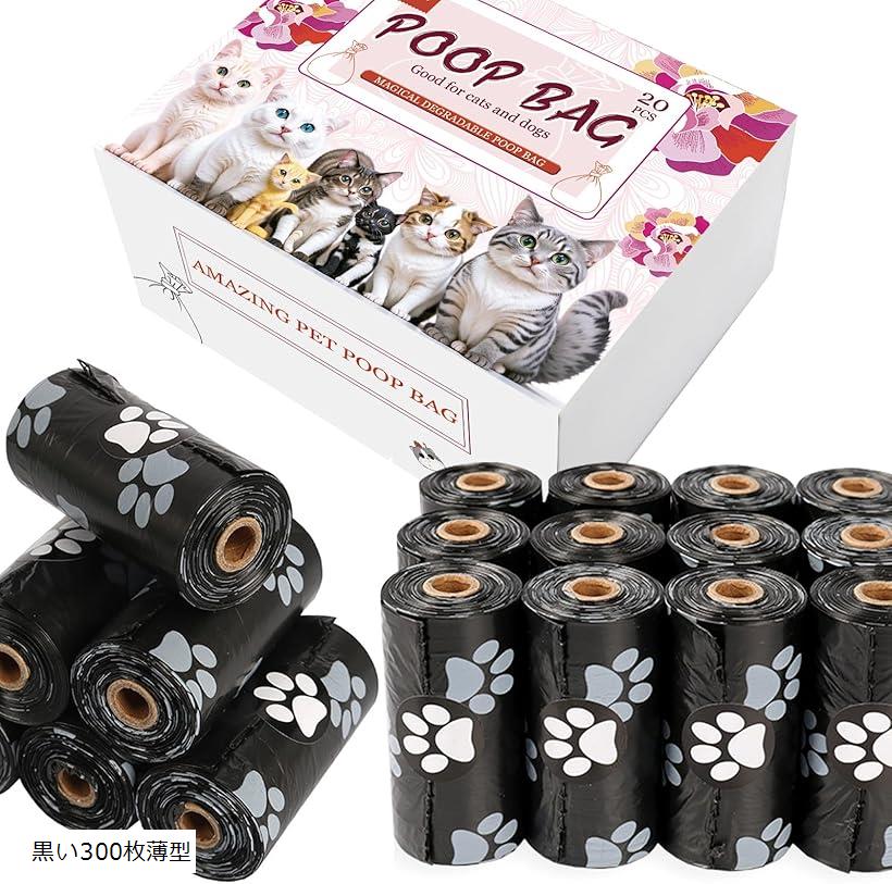 うんちが臭わない袋 におわない袋 猫犬用 ウンチ処理袋 ペット用 消臭袋 生分解性 薄型 (黒い300枚薄型)