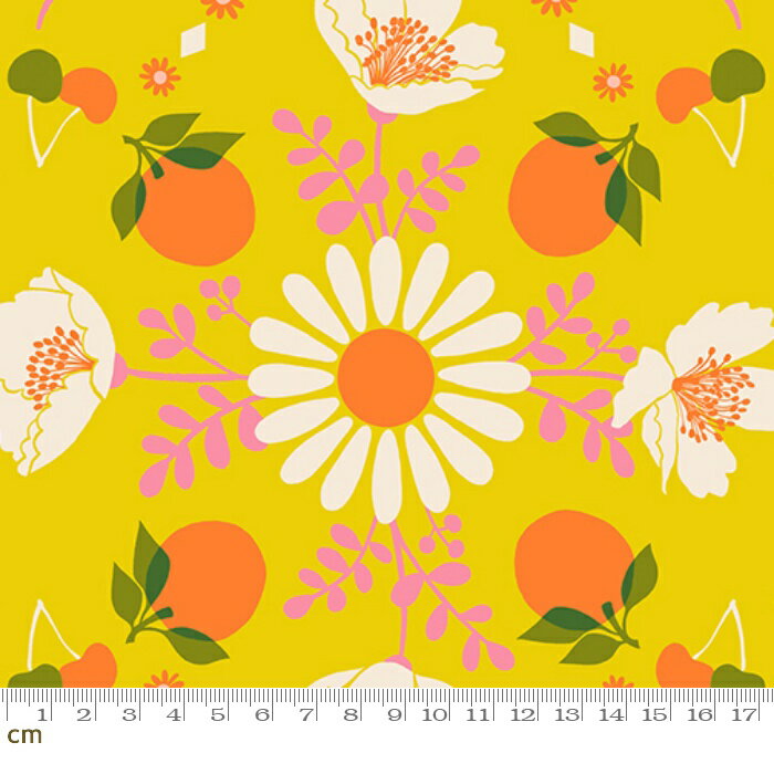 【Moda モダ】Juicy-RS0085-12(3B-08) イエロー 花柄 フルーツ柄 レトロポップ ruby star ルビースター コットン100% シーチング【10cm単位販売】
