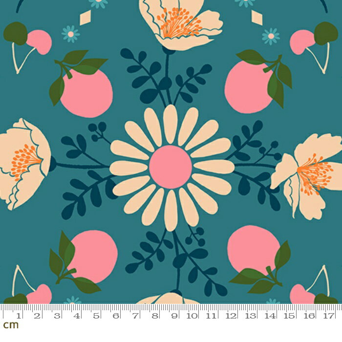 【Moda モダ】Juicy-RS0085-13(3B-08) ブルー 花柄 フルーツ柄 レトロポップ ruby star ルビースター コットン100% シーチング【10cm単位販売】