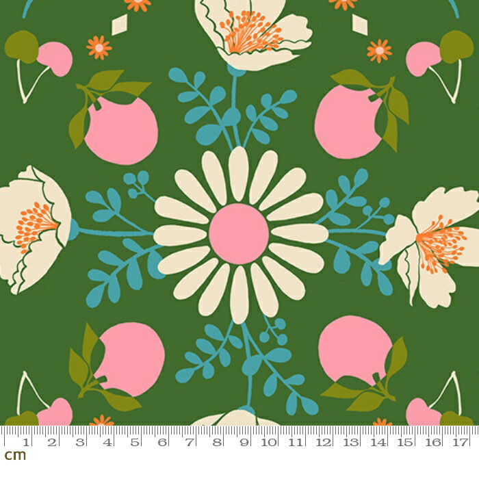 【Moda モダ】Juicy-RS0085-14(3B-08) グリーン 花柄 フルーツ柄 レトロポップ ruby star ルビースター コットン100% シーチング【10cm単位販売】
