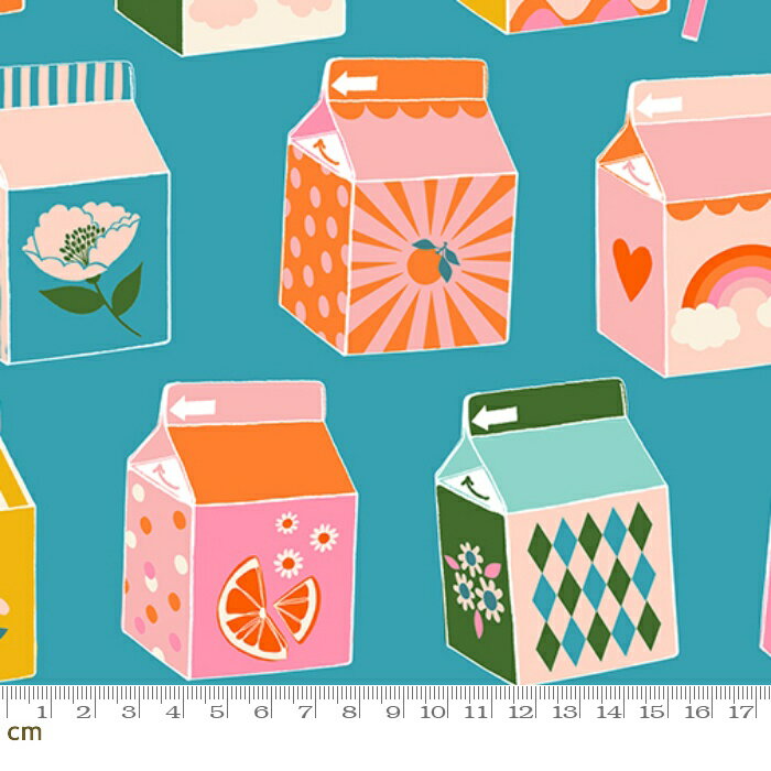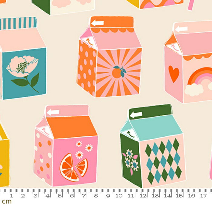 【Moda モダ】Juicy-RS0086-11(3B-08) アイボリー カラフル 紙パック ジュース柄 フルーツ柄 レトロポップ ruby star ルビースター コットン100% シーチング【10cm単位販売】