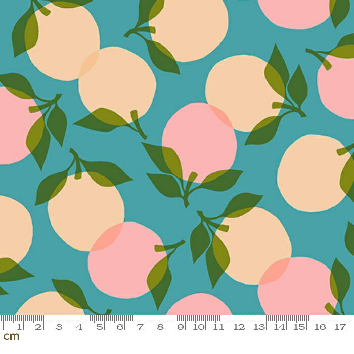 【Moda モダ】Juicy-RS0088-15(3B-08) ブルー系 ピーチ柄 フルーツ柄 レトロポップ ruby star ルビースター コットン100% シーチング【10cm単位販売】