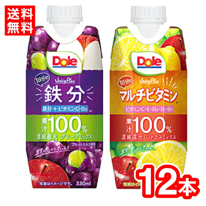 雪印メグミルク Dole(ドール) Juicy Plus 1日分の鉄分 330ml紙パック×12本入 メーカー 問屋直送| 送料無料 果汁100% ジュース グレープ リンゴ