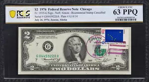 1976 $2 FRN ジュノー アラスカ州旗スタンプ キャンセルされた PCGS 選択 UNC 63 PPQ
