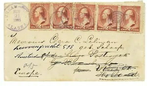 希少なアラスカ州ジュノーの1885年オランダ登録カバー、2セント紙幣×5
