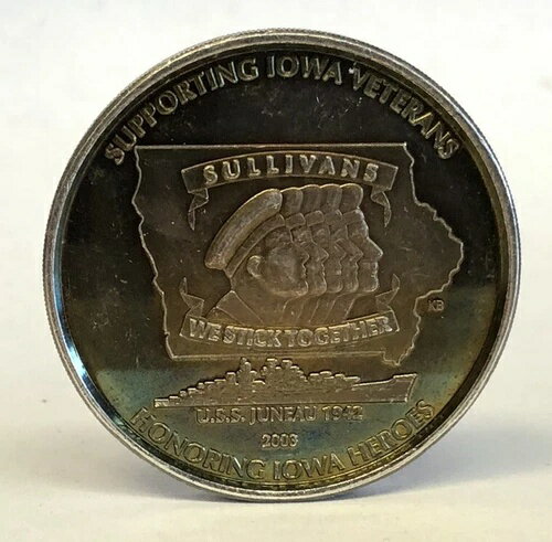 第二次世界大戦のUSSジュノー サリバンブラザーズ アイオワ 1オンス シルバー ラウンド ナンバー入り 0973