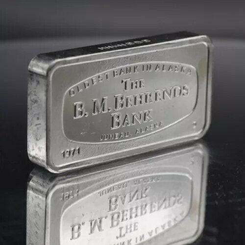 1971年ヴィンテージ B.M. ベレンズ銀行 ジュノー アラスカ フランクリンミント シルバーアートバー C1376