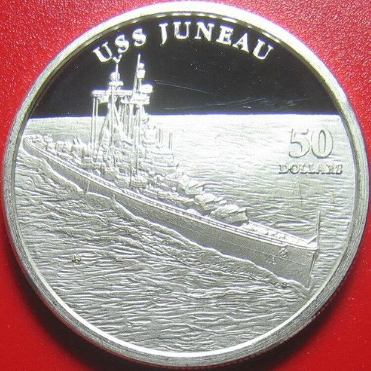 1998年 マーシャル諸島 50ドル プルーフ 1オンス シルバー USS ジュノー 海戦 グアダルカナル島