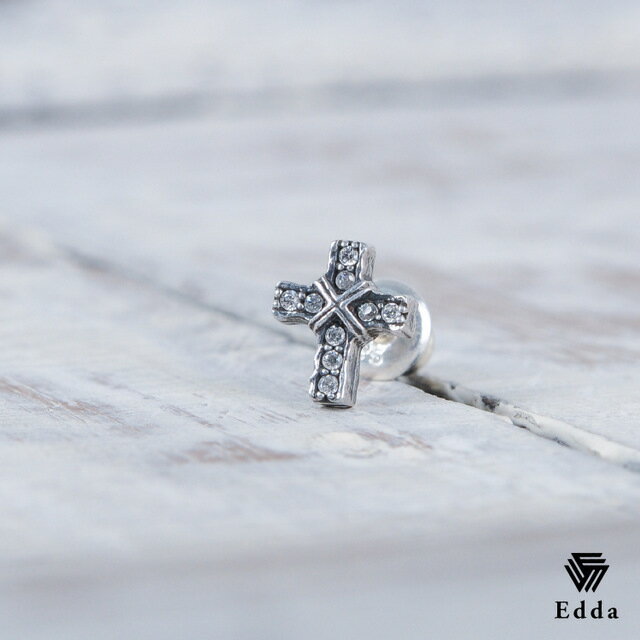 送料込み おしゃれなピアス クロス 小さめ シルバーピアス ピアス かっこいい 人気 ブラック シルバー シルバー925 十字架 ジルコニア キュービック アンティーク加工 いぶし加工 メンズ レディース クリスマス バレンタイン ホワイトデー 19juuku Edda エッダ