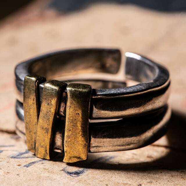 商品情報素材シルバー925・真鍮仕上げ燻しアンティーク加工サイズ幅(最大)10.5mm 厚み(最大)3.6mmサイズ展開 フリーサイズ重さ:12.1g特徴無骨な2連のフリーサイズリングに荒々しく異素材であるブラスを巻きつけたリング鈍い光沢を表現し男らしさをより一層引き立てるアイテムです太い指にも負けない力強さを感じて頂けると思います。ギフトBOX1点につき1つプレゼントポイント10倍 10%OFFクーポン 送料込み 無骨な2連のフリーサイズリング フリーサイズなのでプレゼントにもお勧め フリーリング シルバー925 ペアリング お揃い おしゃれ 指輪 リング ゴールド シルバー プレゼント 人気 アンティーク加工 黒 メンズ 19juuku Edda エッダ 送料無料 シンプル 個性的 シルバー ピンキーリング 大きいサイズ 小さいサイズ ラッピング対応可 3