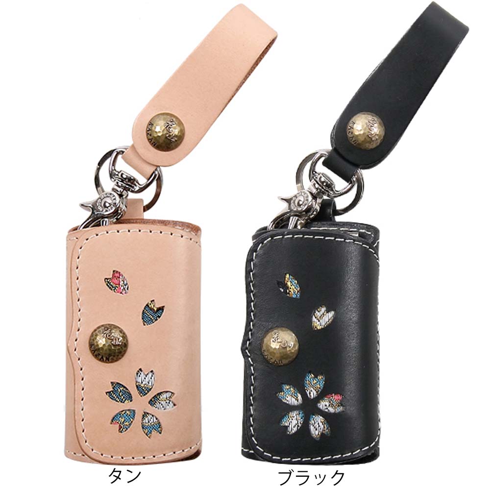 【デグナーWEB正規代理店】 デグナー K-47K ★ 花山 キーケース 都桜/ブラック,都桜/タン 4連フック 牛革/金襴織物 DEGNER KAZAN KEY CASE K-47K