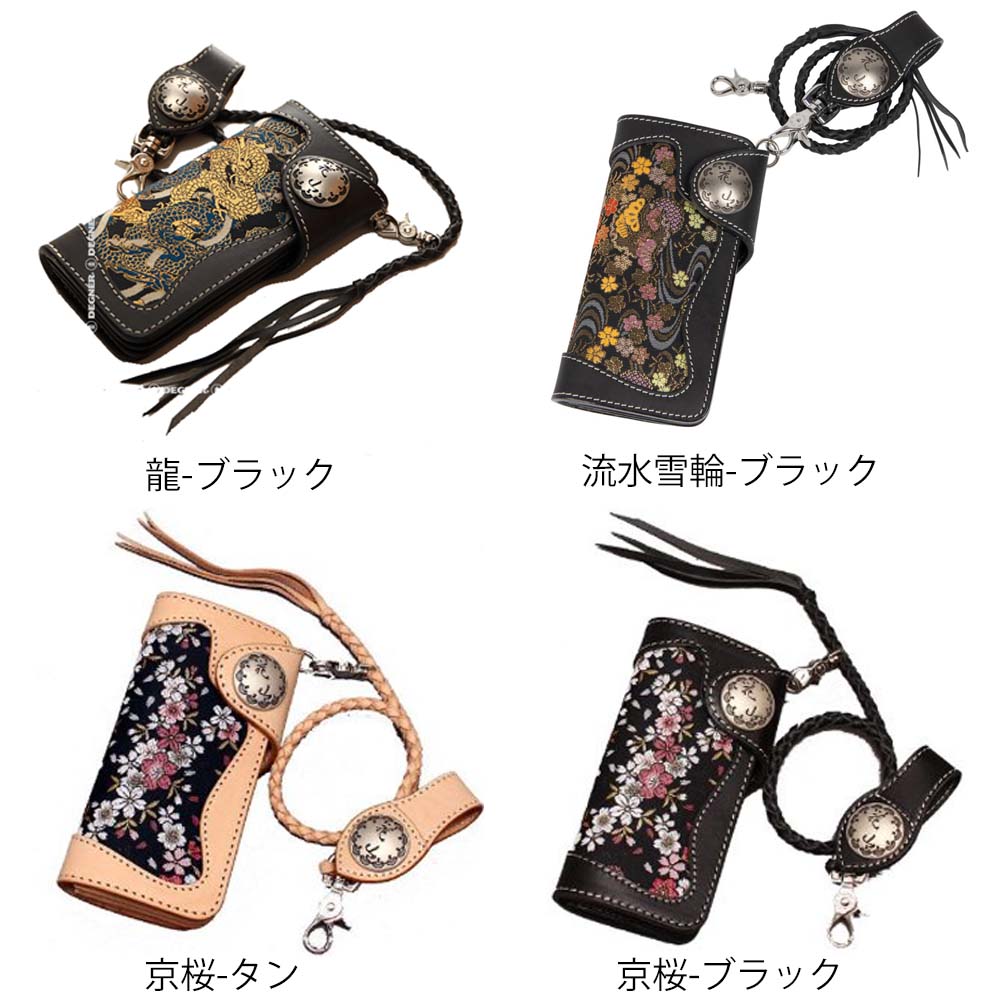 ☆【DEGNER】【花山】WV-10K-KZ-BK 花山レザーウォレット/KAZAN LEATHER WALLET(ブラック) [WV-10K-京桜-BK]小銭 小銭入れ 革 レザー アメリカン 和風 和柄 日本 デグナー【バイク用品】