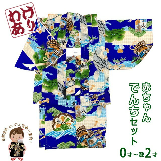 【訳あり品】 男の子 でんちセット ウール 日本製 赤ちゃんの着物 ちゃんちゃんこセット「青系、兜と昇り鯉・源氏車」KBDS018B