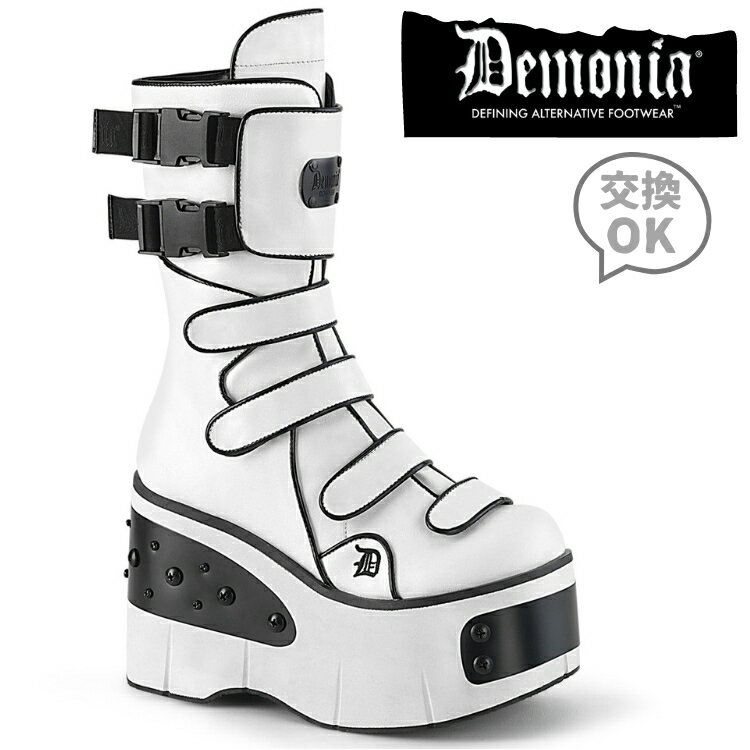 demonia デモニア 厚底 ブーツ ミドルブーツ ショートブーツ 厚底 ウェッジソール 11.5cm ヒール 白 ホワイト 黒 ブラック プレート バックル ストラップ ジッパー 小さいサイズ 大きいサイズ 厚底靴 パンク V系 ゴシック 靴 レディース メンズ KERA-108 KERA108/WVL 取寄