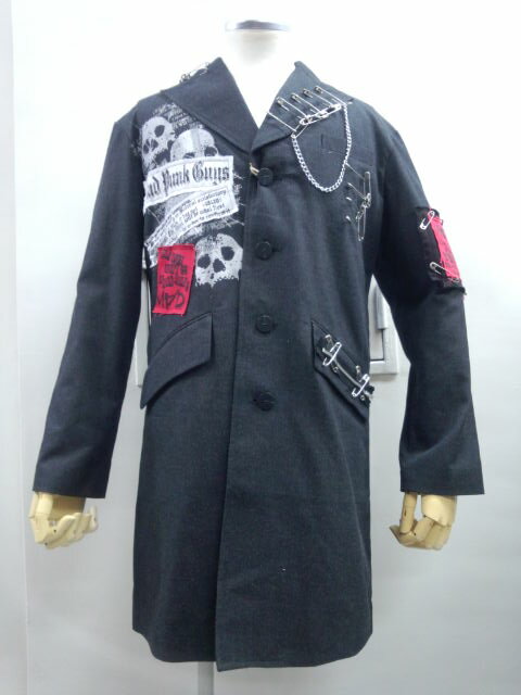 ACID JAZZ MEN (MAD メンズ) PUNK系 カスタム ハーフコート チャコールグレー M L /パンク系/KERA系/ロック系