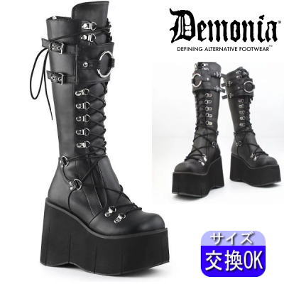 オリジナル特典付 デモニア demonia 厚底 ブーツ 黒 超厚底 ロング ブーツ 人気 パンク ロック ロリータ ゴシック ゴス ゴスロリ レディース 靴 ごつい V系 サイバー DEMONIA 公式 KERA-200 KERA200/BVL