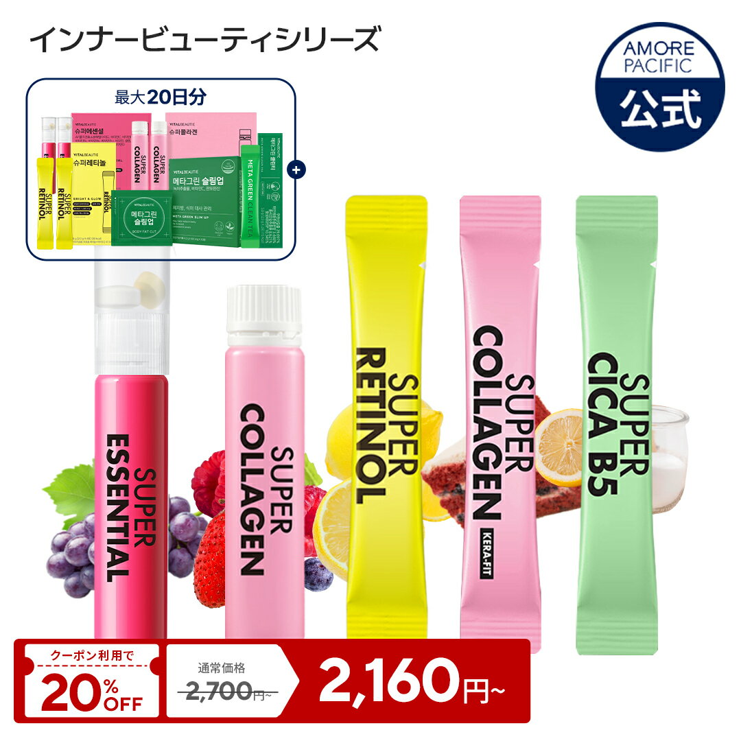 商品詳細 商品名 VITALBEAUTIE スーパーシリーズ(全5種) 内容量 スーパーエッセンシャル:7EA / 14EA (7EA*2) / 28EA スーパーコラーゲン:14EA / 28EA スーパーレチノール :30包 / 60包(30包*2) スーパーコラーゲンケラフィット:30包 スーパーシカ B5 30包:30包 【スーパーシリーズ3種セット】 エッセンシャル 7EA + コラーゲン 28EA + レチノール30包 メーカー [VITALBEAUTIE/バイタルビューティー] 広告文責 AMOREPACIFIC +82-80-023-5454 区分 食品 備考 当店は、韓国を本店とする海外ショップです。 商品お届けまでに、5~10営業日程度かかります。 【注意事項】 -当店でご購入された商品は、原則として、「個人輸入」としての取り扱いになり、韓国からお客様のもとへ直送されます。 -一部商品は国内の提携先倉庫から配送されます。 -個人輸入される商品は、すべてご注文者自身の「個人使用・個人消費」が前提となりますので、ご注文された商品を第三者へ譲渡・転売することは法律で禁止されております。 -関税・消費税が課税される場合があります。詳細はこちらご確認下さい。 -国内配送の商品は国内でのお買い物と同じく消費税が発生いたします。関税はかかりません。>