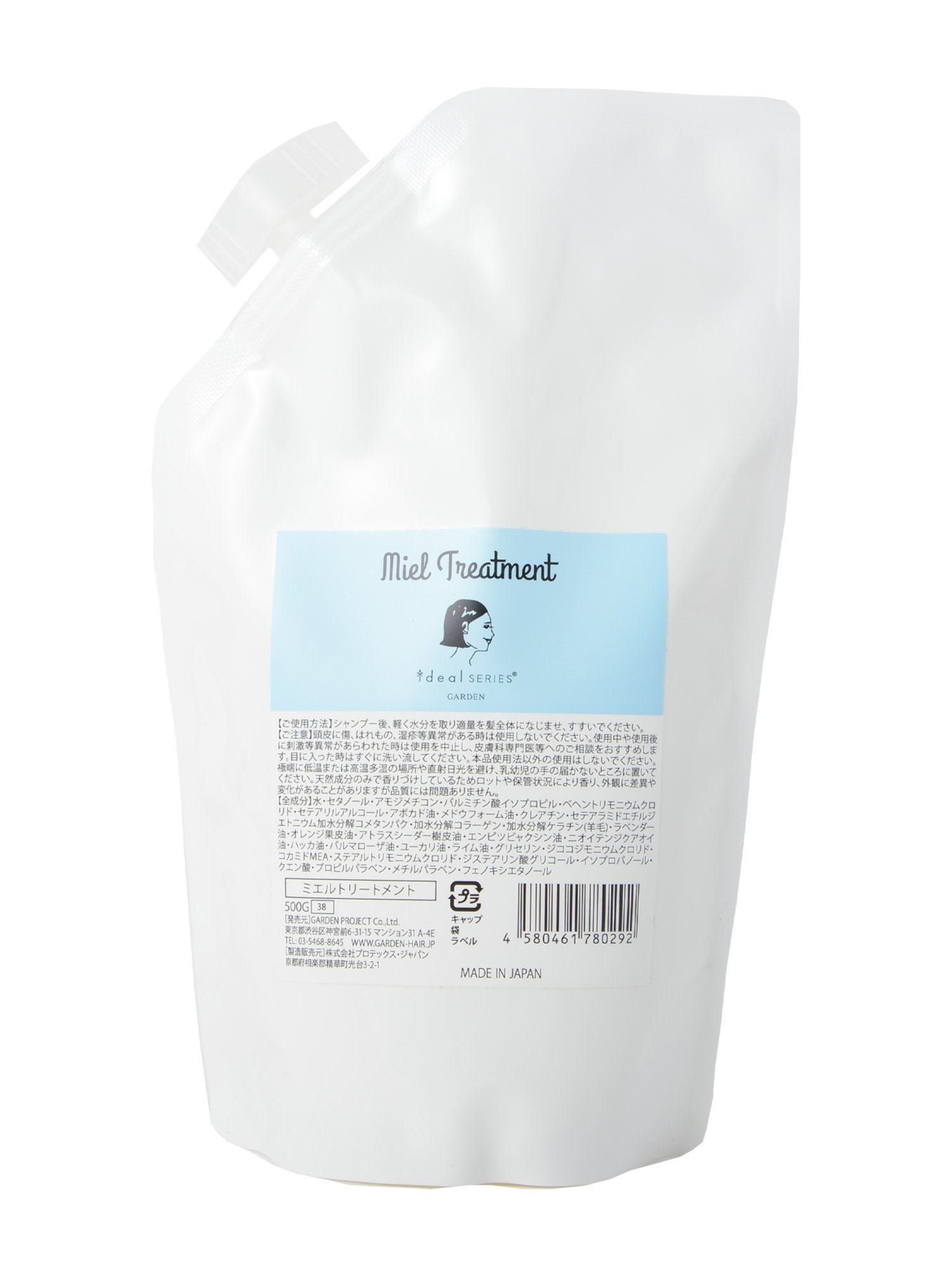 GARDEN ideal SERIES <ミエルトリートメント(詰替え)/500g>トリートメント 洗い流す ヘアトリートメント ヘア サロン 美容室 ボトル ダメージヘア 潤い しっとり ハリ コシ コラーゲン ケラチン アボカドオイル クレアチン ガーデンイデアルシリーズ ヘアケア 【送料無料】