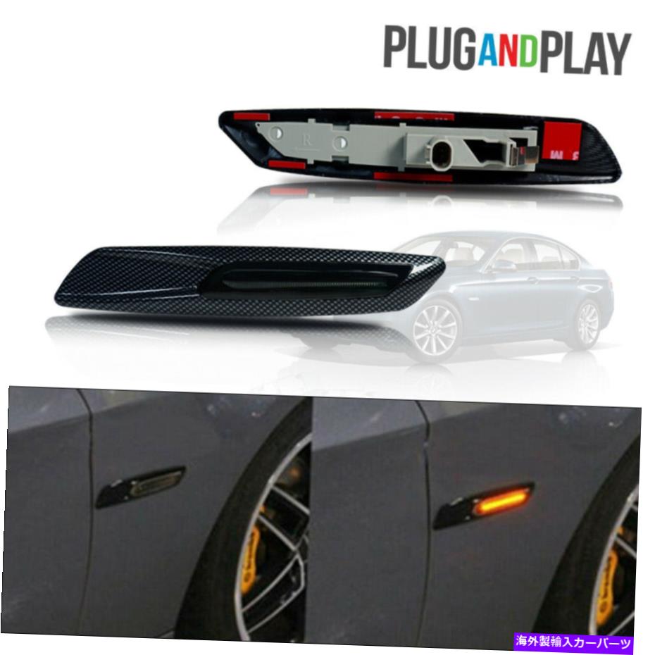 サイドマーカー 04-10 BMW 1 3 5シリーズのカーボンファイバースタイルフロントサイドマーカーアンバーLEDライト Carbon Fiber Style Front Side Marker Amber LED Lights For 04-10 BMW 1 3 5 Series