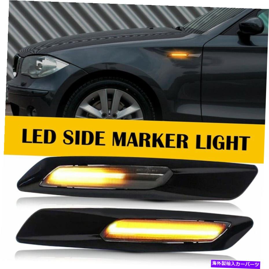 サイドマーカー 06-10 BMW 5シリーズE61カーパーツの2xスモークバンパーサイドマーカーアンバーLEDライト 2x Smoked Bumper Side Marker Amber LED Light For 06-10 BMW 5 Series E61 Car Part
