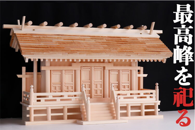 大きく雄大な社殿の造り、荘厳な大社の雰囲気をそのままに再現した最高位の神棚シリーズです。 材の選別、木取りから組上げまで、大型のお社でも精密な工房手造り。伝統的な神棚設計を基に、装飾加工に技術を集約させた「逸品」となっています。祀ればいっそう、華やかに。 手作業で1枚づつ重ねて造られる「こけら葺き」屋根のお社。いにしえの大社を想わす、威風堂々の出で立ちです。工房職人たちの心意気が伝わる、岐阜桧製の逸品神棚。 ■お社本体 高さ48.0 幅80.0 奥行き33.0 ■お神札が入るスペース 高さ33.0 幅14.0 奥行き8.0 ■ご注文のタイミングによりましては製造元より取り寄せ後の配送となり、お届けにお時間をいただく場合がございます。 その場合、当店から納期のご連絡をさせて頂きますが、お急ぎのお客様はご注文前に納期をお問い合わせください。 ■お支払方法に代引きはお選びいただけません。■大型商品のため北海道、沖縄、離島地域へのお届けは、送料実費を請求させていただいております。大変申し訳ございませんが送料が高額となりますので、ご購入前にショップまで ご確認いただけますようお願いいたします。 「送料ご案内ページ」をクリックしてご確認ください。 【商品管理番号】 k05 k12【ご購入前に必ずご確認ください】ご注文のタイミングによりましては製造元より取り寄せ後の配送となり、お届けにお時間をいただく場合がございます。 その場合、当店から納期のご連絡をさせて頂きますが、お急ぎのお客様はご注文前に納期をお問い合わせください。 ■その他の三社単品はこちら