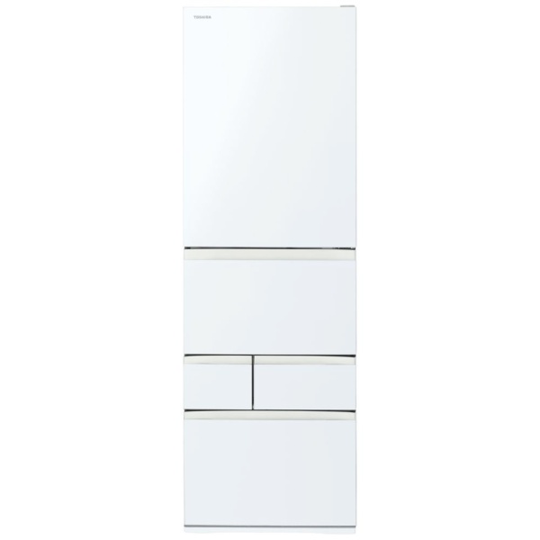 大容量&基本機能を搭載したスタンダードモデル。高まる省エネ意識へ対応「とってもにエコ」搭載。まんなかにレイアウトされた野菜室だから、重い野菜などの出し入れもスムーズにできます。■うるおい冷蔵室 「うるおい冷気」で乾燥を防いで風味と食感をキープ。■速鮮チルド&解凍モード 見やすく探しやすい2段階式。上段と下段とで食材を分けて保存できます。■仕切れるチューブスタンド 可動式のチューブスタンド。ドアポケットに設置して、散らばりがちなチューブ類をすっきり収納できます。本体を回転させて、小瓶などの仕切りとしても使用可能です。■新鮮 摘みたて野菜室 今収穫したような、みずみずしさが長持ち。ツイン冷却の高湿度冷気で収穫したてのようなみずみずしさとおいしさが長持ちします*。 *運転状況や食品の種類、状態や量により、効果は異なります。東芝調べ。■野菜室がまんなか 出し入れしやすく、キッチンでの足取り軽やか。■選べる節電モード 季節やご家庭に合わせて、お好みの節電モードを設定いただけます。※ご購入の際は、設置・搬入スペースをご確認頂きますようお願い致します。