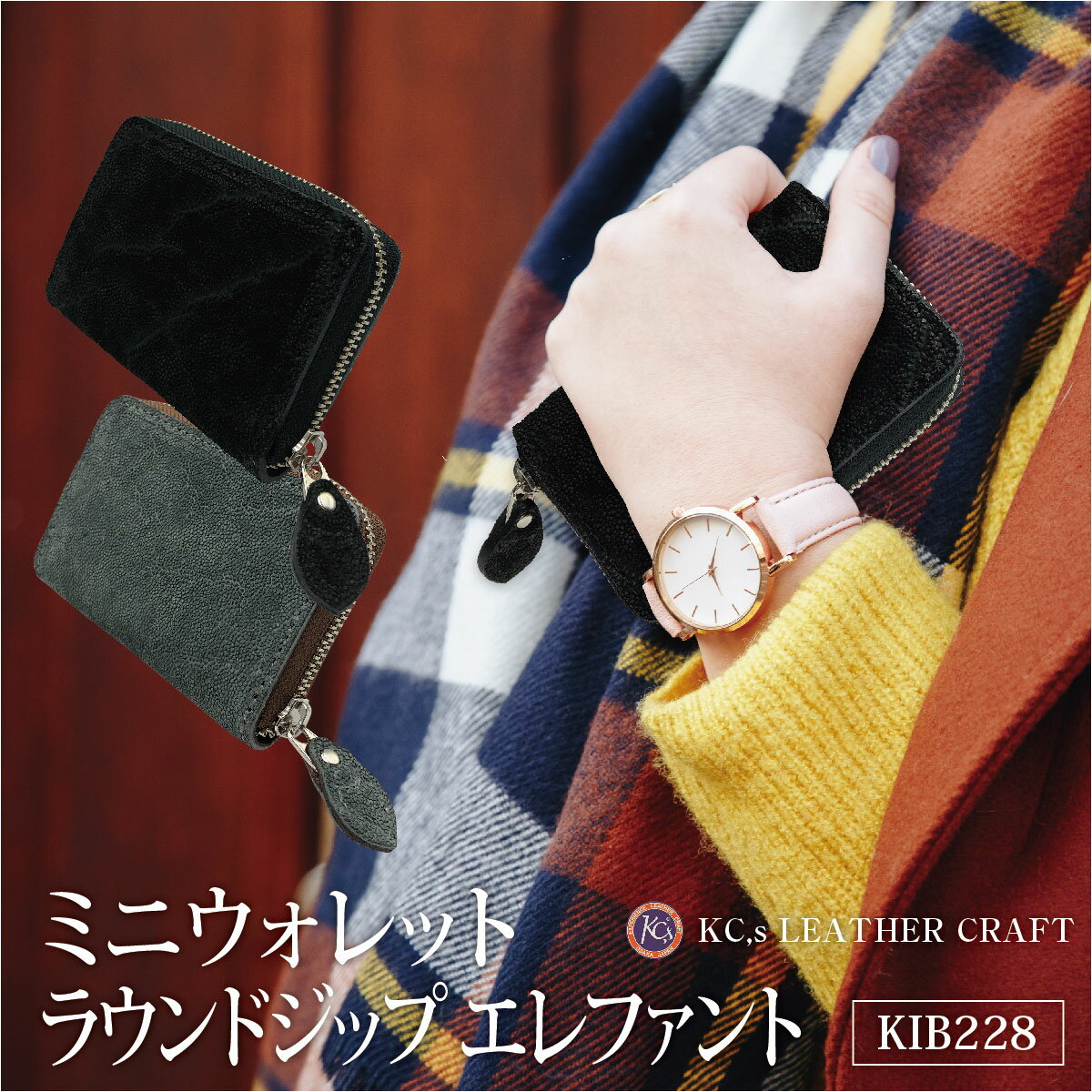 財布 ゾウ革 ミニウォレット 小銭入れ メンズ レディース パイソンウォレット ラウンドファスナー 像革 革 レザー KC,s ケーシーズ ケイシイズ 母の日 誕生日 kib228