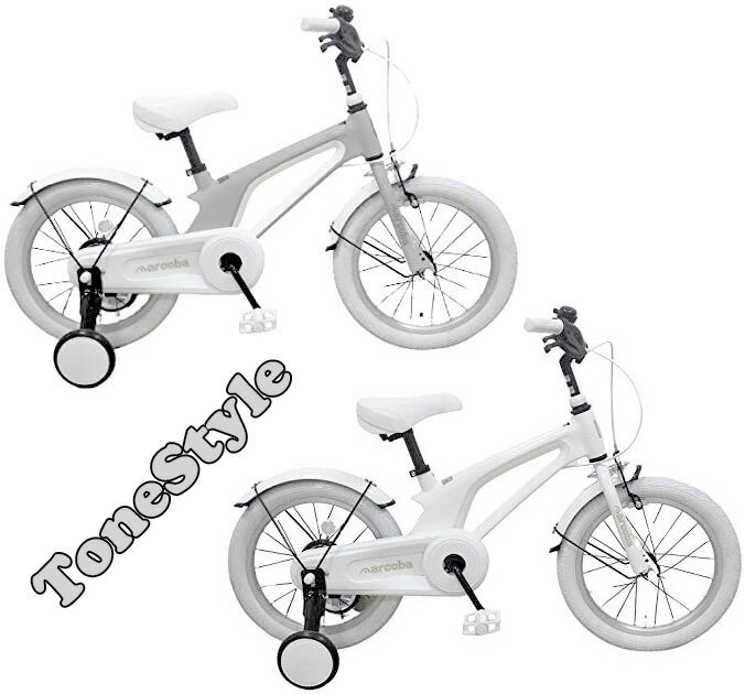 超軽量マグネシウムフレーム白を基調としたキッズモノトーン&コックスタイル補助輪付き16インチ幼児車キッズバイク 子供用自転車ホワイト ミスティックグレー カラータイヤホワイトパーツ ショートフェンダーカラーワイヤー&リム