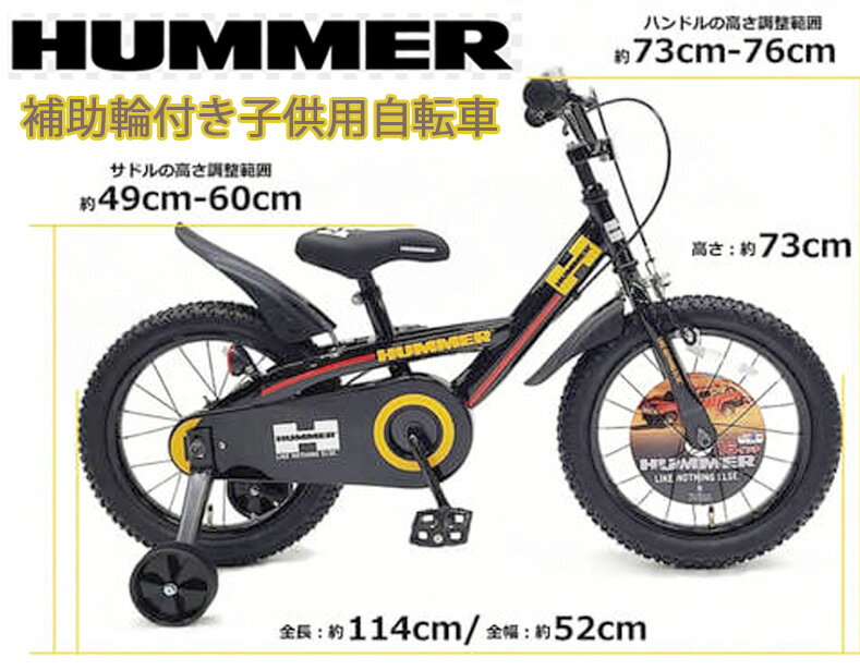 ハマー 補助輪付き16インチ子供用自転車キッズバイク ブラック 16×2.125インチ太タイヤチャイルドクルーザーロゴ入りフレーム安心ロゴ入りフルチェーンカバーケース前カゴ&&泥除け標準装備誕生日プレゼントやお孫さんへの贈り物に HUMMER Kids Bike