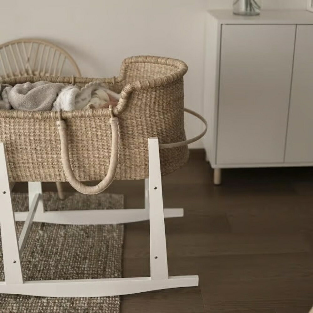 商品情報サイズW83cm(max)、D47cm、H56cm(約)W~82cm、D43cmまでのバスケットにお使い頂けます)材質ニュージーランドパイン色ナチュラル / ホワイトご注意モニター発色の具合により色合いが異なる場合がございます。在庫数の更新は随時行っておりますが、お買い上げいただいた商品が、品切れになってしまうこともございます。その場合、お客様には必ず連絡をいたしますが、万が一入荷予定がない場合は、キャンセルさせていただく場合もございますことをあらかじめご了承ください。【沖縄県への配送不可】 【送料無料】 Rocking Wooden Stand ボルガクーファン スタンド ワイドサイズ クーファン ベビーベッド クーファンスタンド ボルガ クーファン ベビーベッド moses basket 赤ちゃんを冷気やほこりからまもる 出産準備や出産祝いギフトに Hippo + Birds ORIGINAL ボルガクーファン専用ワイドサイズ ロッキングスタンド当店販売のクーファンサイズに合うスタンドをお作りしました。ワイド規格でボルガクーファン底部を安定的に支える為の𝟤本のバーを追加しています。スタンドを使うことで赤ちゃんの抱き上げ、抱き下ろしの際の身体への負担を軽減し、ご兄姉やペット、冷気やホコリから赤ちゃんを守ります。スタンド下部は緩やかにカーブしているので、優しくゆらゆらさせることができます。プラスチックサポートバンド3段階で調節可能※組み立てる必要があるため、工具が必要です。組み立て目安時間約 : 20-30分*ネジ締めの際はネジを1本、1本完全に締めず、ネジがネジ穴に入るのを確認してから緩く締め、次のネジも同じ様に緩く締めます。それから、少し増し締め、次のネジも同様に増し締めを繰り返して完全にネジを締めてステップごとの組立てを行ってください。組立て完了後、全体的にネジが完全に締まっている事を確認してください。初めからネジを完全に締めてしまいますとネジとネジ穴がずれてしまいネジが入らなくなってしまいますのでご注意ください。*電動ドライバーを使用する際は、最後の増し締めは必ず手締めで行ってください。[ご使用上のご注意]* 必ず常に大人の監視下にてご使用ください。* 激しく揺らさないでください。* 寝返りを始めた時または、お子様が9kgを超えた時点でスタンドのご使用を中止してください。* 組み立てたスタンドを解体し、再度組み立てることはしないでください。強度が弱くなります。* 定期的にネジのゆるみがないかを確認してください。 5