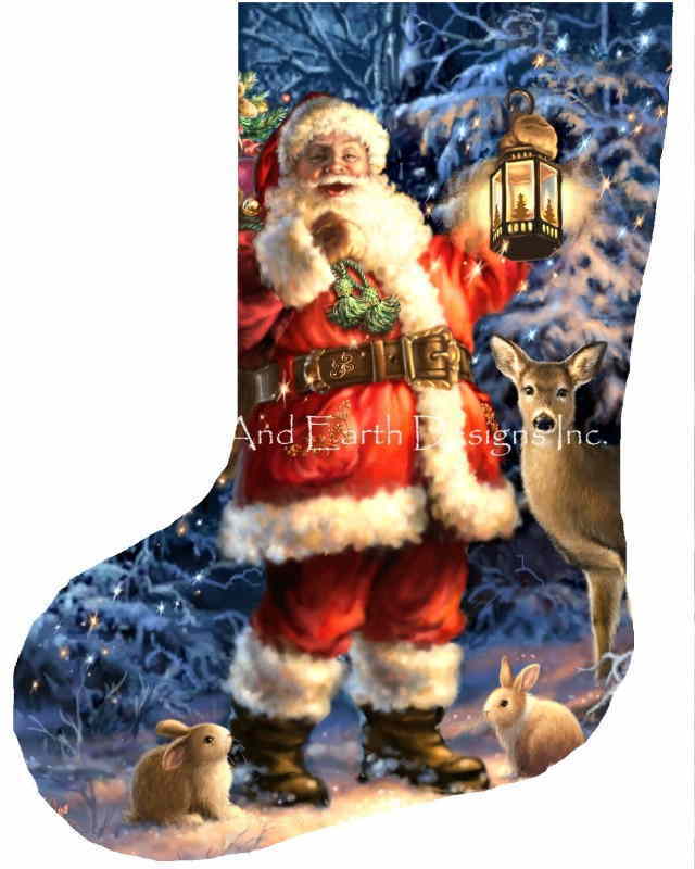 ししゅうクロスステッチ図案 HAED 森のサンタのクリスマスブーツ Heaven And Earth Designs 輸入 Dona Gelsinger 上級者 Stocking Woodland Santa 全面刺し