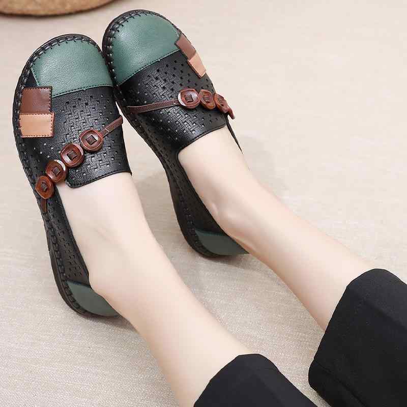 靴 レディース 中高齢者 ママシューズ スリッポン メッシュ 通気性 牛筋ソール 滑り止め ぺたんこ靴 ローヒール ラウンドトゥ カジュアル 普段使い 春夏秋冬 ホワイト ブラック ダークブラウン