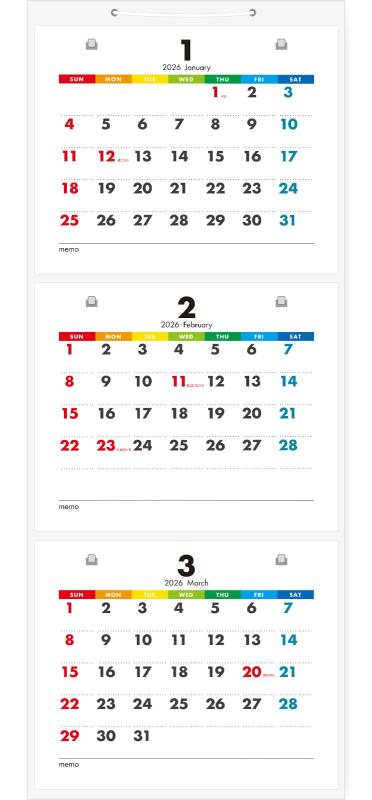 あさひ高速印刷 3ヵ月カレンダー 【2026年】 壁掛け・組替式(Z)日