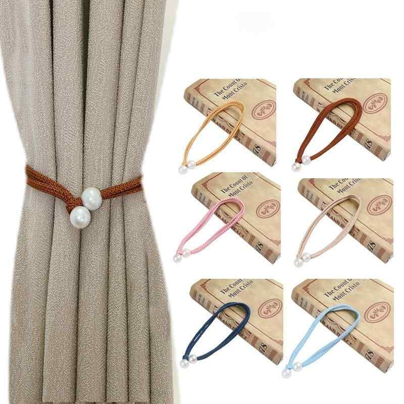 カーテンアクセサリー パール モチーフ マグネット タッセル ホルダー 留め具 シンプル モダン ポリエステル製 房掛け不要 窓周り装飾 おしゃれ インテリア雑貨 グレー ホワイト ピンク ブルー イエロー