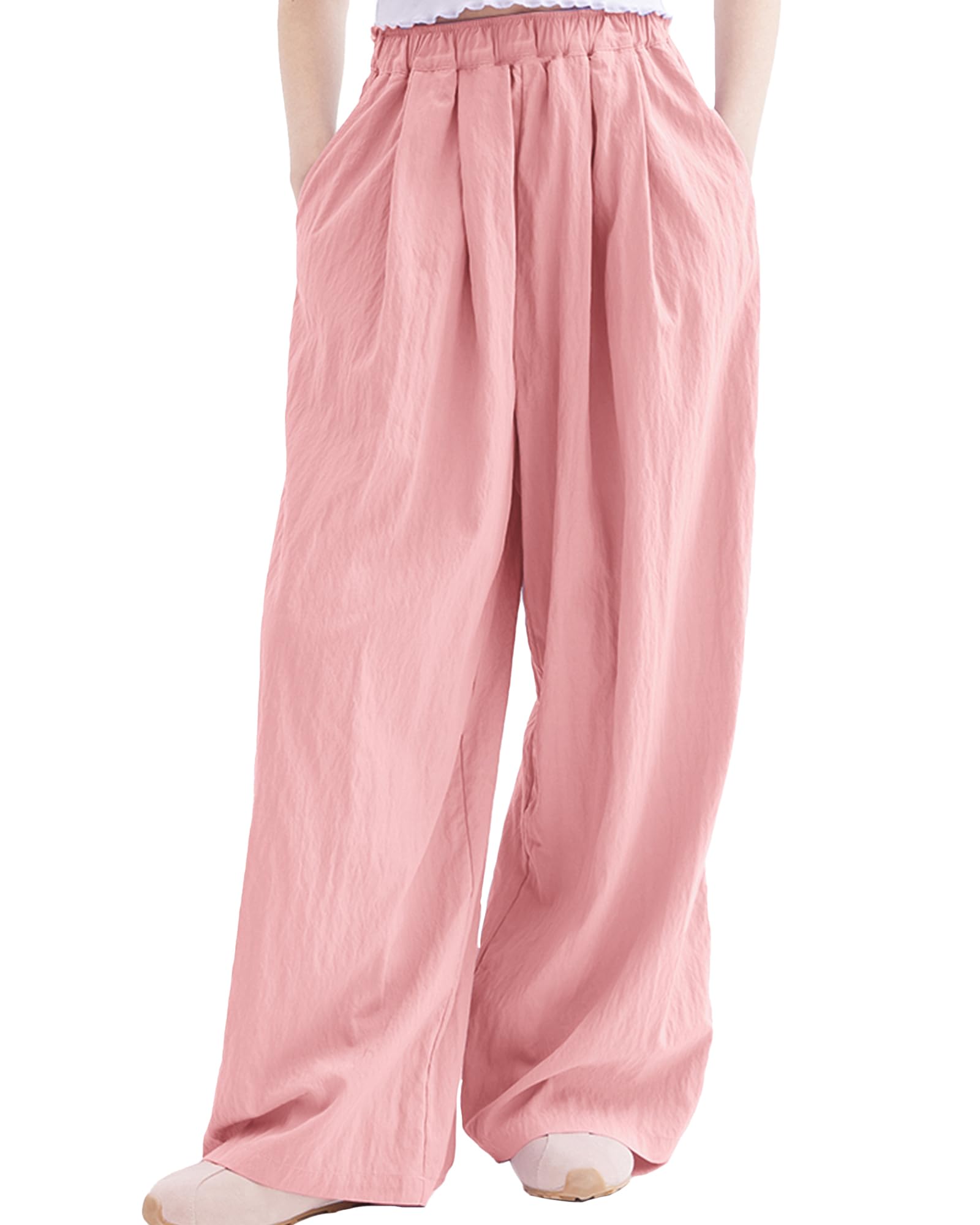 【送料無料】[Rolanko] 女の子 ズボン キッズ ワイドパンツ 涼しい 夏 薄手 ハイウエスト ゆったり 軽量 速乾 130-170cm 色:ピンク、サイズ:150