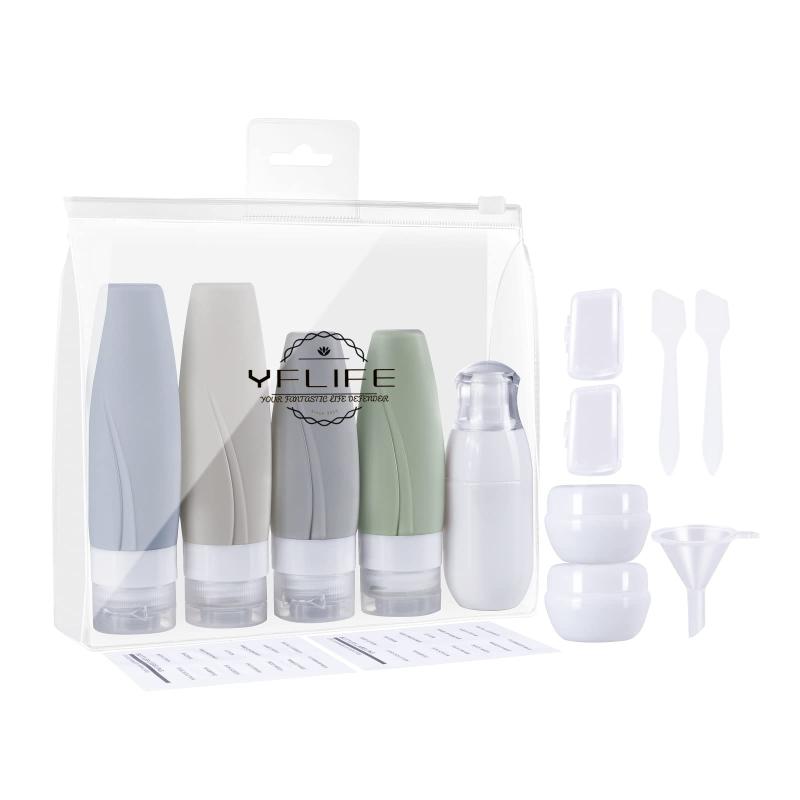 トラベルボトル、トラベルセット15個とトイレタリーバッグ、トラベルエッセンシャルズ、国際旅行用のトラベルアクセサリー、TSA承認済みの防漏シリコントラベルボトル、トラベルコンテ