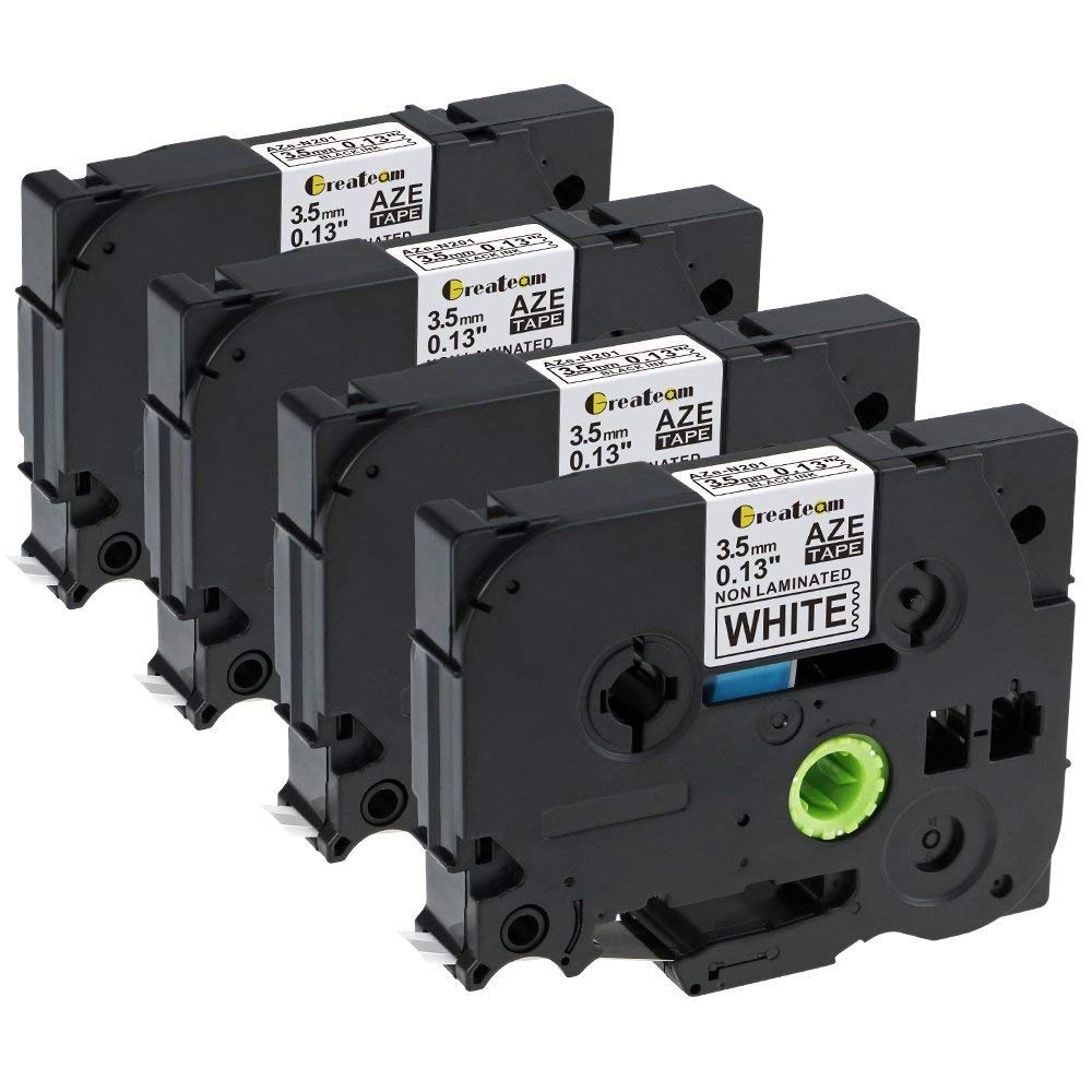 ・Greateam 互換 ブラザー ピータッチテープ 3.5mm TZe-N201 TZeテープ ノンラミネートテープ 白地 黒字 4個セット・活用場所 : オフィス、住宅、学校、病院、建設、ビル管理、 製造倉庫管理、各種店舗などの各種施設・テープ幅 : 3.5mm 巻長さ : 8m。Greateam テプラ互換テープ 強粘着 防水/防腐/耐摩耗性があり。本商品は純正品ではございません・節約のヒント:無駄を省くために、長いTZE-N21テープに必要なテキストを一度に印刷し、個々のラベルにカットすることができます・兼用 ブラザー P-touch ラベルライター ピータッチ本体 : ブラザー ラベルライター ピータッチキューブ PT-P910BT PT-P710BT PT-P300BT (スマホ専用 TZeテープ); ピータッチ PT-J100 PT-J100P PT-J100W PT-J100KW PT-J100SL PT-J100MR PT-190 PT-190P PT-190PO PT-P700 PT-170 PT-160 PT-120 PT-180 ; ブラザー工業 PCラベルプリンター P-touch PT-P900W PT-P900W PT-P900W PT-P750W PT-P950NW ; PT-250BG PT-250BY PT-2500PC PT-1500PC PT-9500PC PT-9300PC PT-9200PC PT-D210 PT-D600 PT-2730 PT-2430PC PT-9700PC PT-9800PCN など