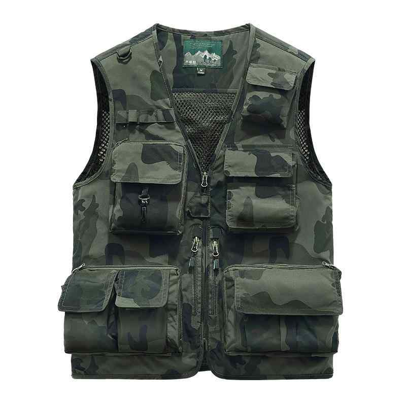 ベスト メンズ ワーク 多ポケット 迷彩柄 ジレ 薄手 アウトドア スポーツ 通気性 軽量 ポリエステル Vネック ゆったり ルーズ カジュアル 普段使い カーキ グリーン