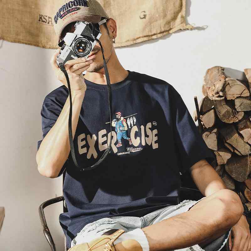 Tシャツ メンズ 男性用 夏 アメカジ クルーネック 半袖 トップス ゆったり オーバーサイズ ドロップショルダー ルーズフィット プリント グラフィック 綿 コットン 薄手 抗菌 スポーツ ストリート カジュアル 普段使い