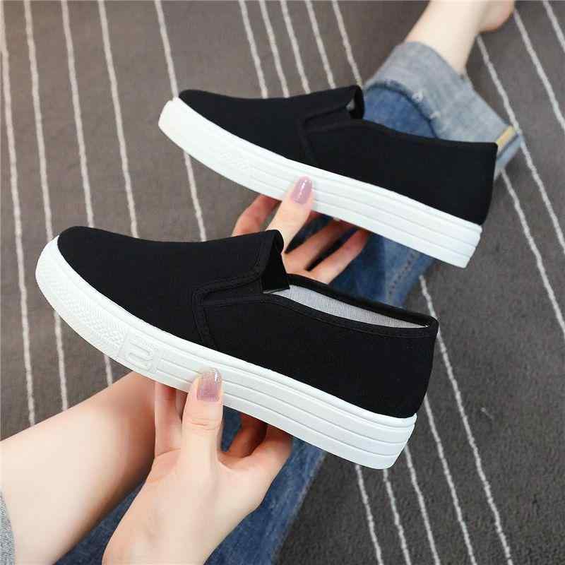 スニーカー レディース 厚底 スリッポン ぺたんこ靴 フラットシューズ 看護師 婦人靴 キャンバス地 布靴 黒 白 通気性 軽量 滑り止め ローカット カジュアル