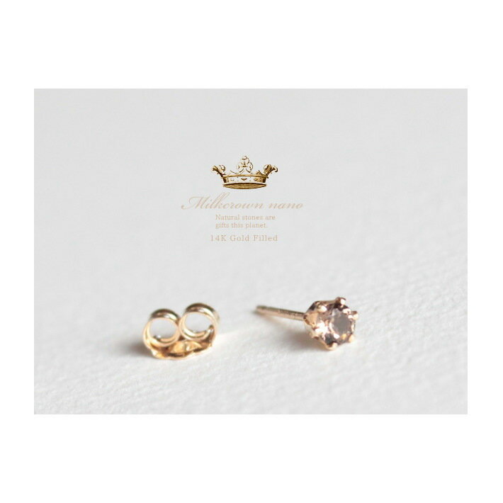 Milkcrown nano14KGF天然石1粒ピアス煙水晶/スモーキークォーツ/宝石質/3mm※1個売り(片耳ずつ1個単位販売)