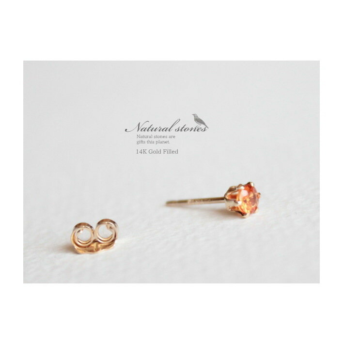 Milkcrown nano 14KGF天然石1粒ピアスオレンジサファイア/9月誕生石/3mm※1個売り(片耳ずつ1個単位販売)